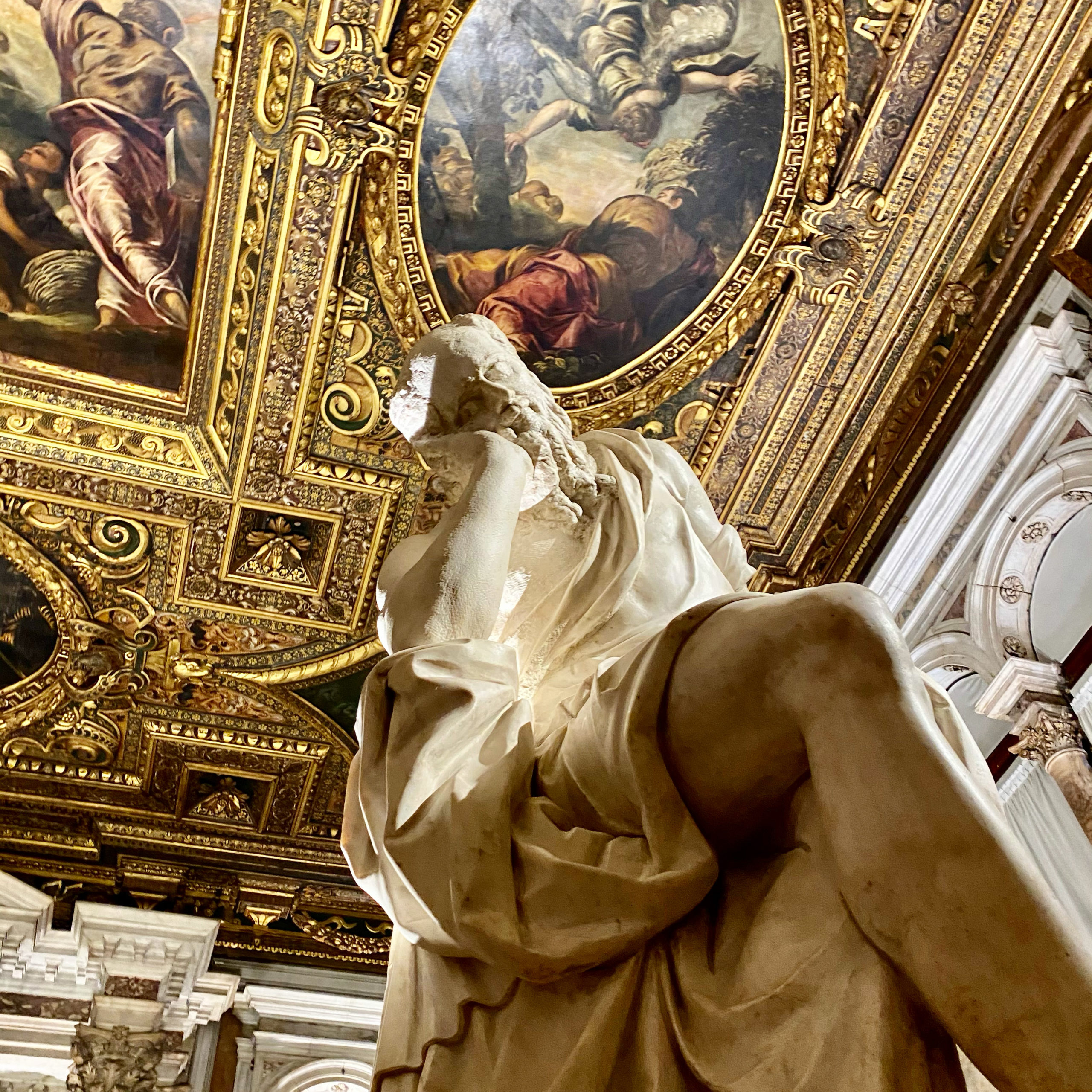 The decorations of this architectural two-story masterpiece were commissioned to Tintoretto in 1564, who worked on it for more than twenty years, painting his most celebrated pictorial cycle, with episodes from the New and the Old Testaments. But there are other must-see wonders hidden in this magnificent space: the Christ Portacroce and the Annunciation by Tiziano Vecellio, the two paintings representing Abraham and the Angels and Agar and Ishmael by Gianbattista Tiepolo, the baroque Staircase made by Giovanni Antonio Fiumani, Pietro Negri and Antonio Zanchi, and the Treasure Room with the reliquaries built by Giorgio Fossati.